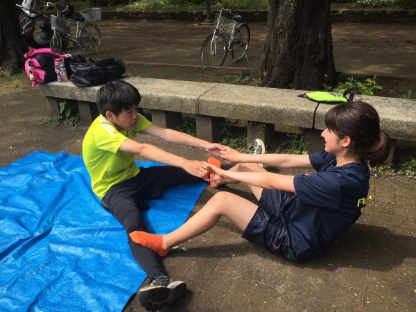 最後は、コーチの補助を加えて重点的にストレッチングを行いました。
