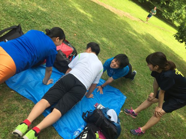 各教室毎にマラソントレーニングを済ませたら、筋トレのタイミングが一緒だったので、お友達とコーチと仲良くトレーニング。^^