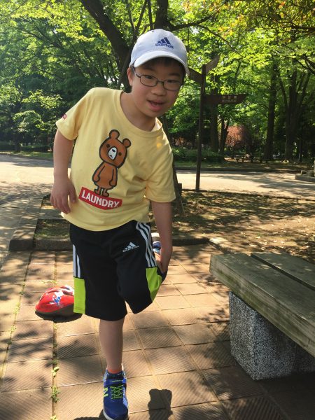 トレーニングを積んだ結果、コーチのサポートを入れずに、「準備体操の片足立ちで太ももの前を伸ばすこと」ができるようになりましたー!