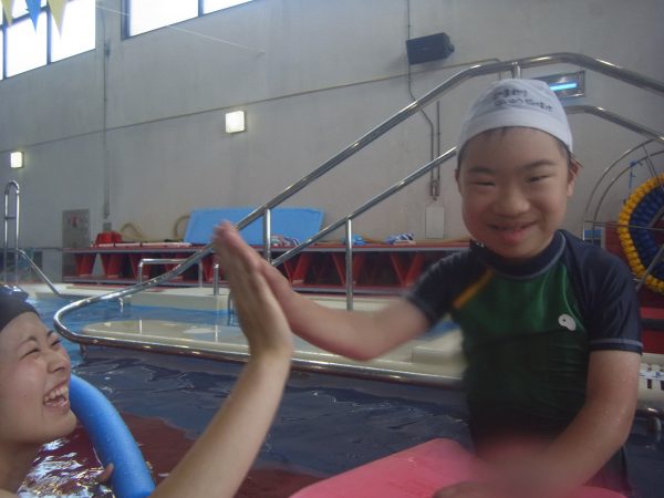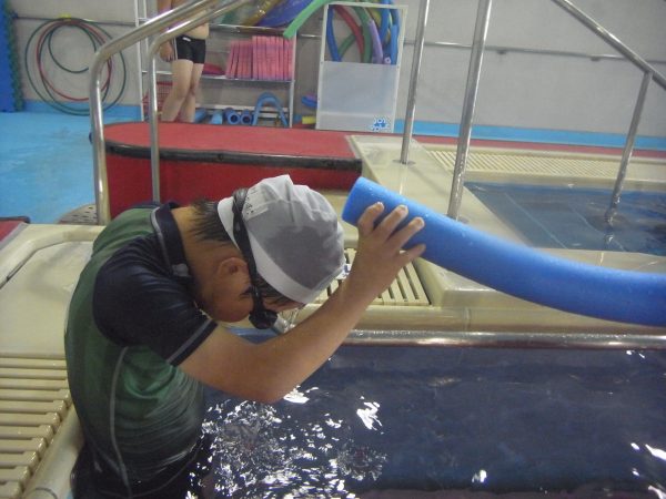 大裕くんは、水への恐怖心があり、なかなか顔に水をかけることが難しい生徒さんです。