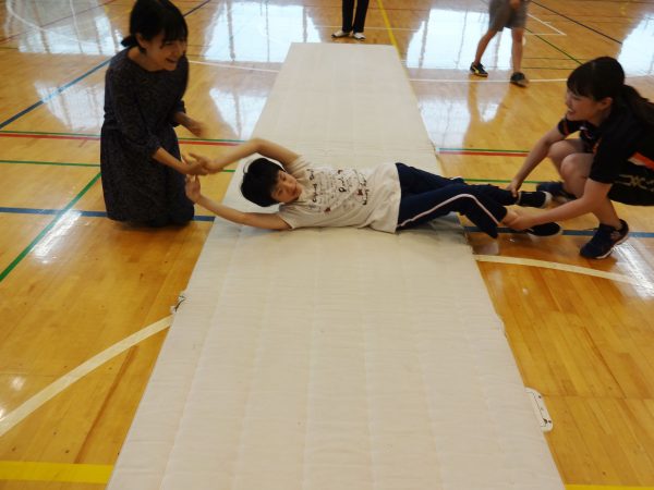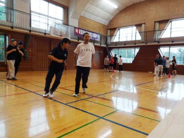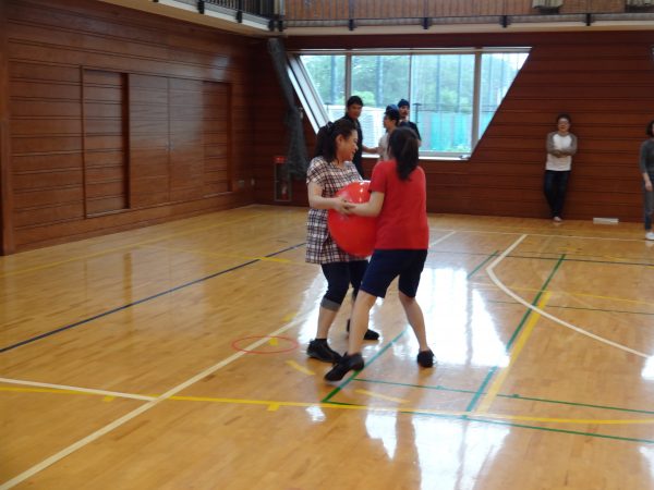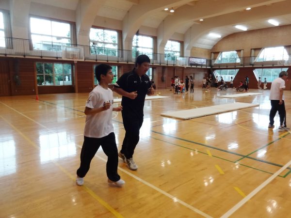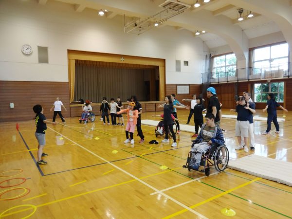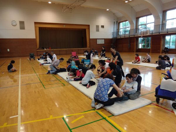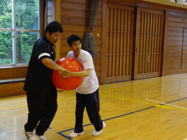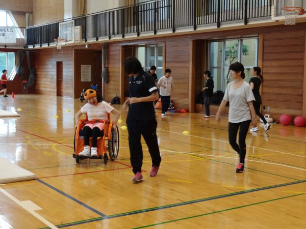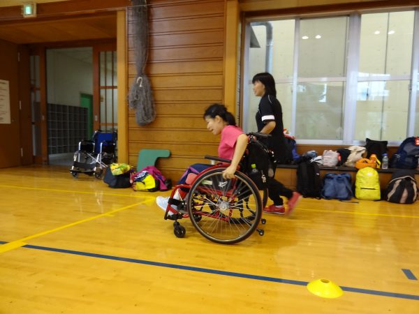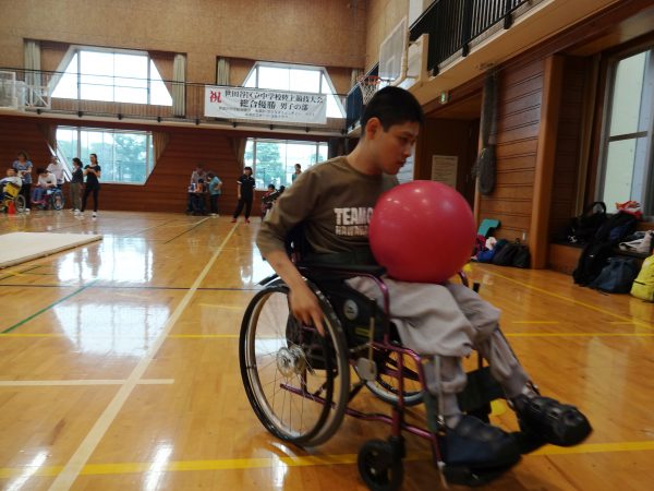 車椅子組は、ボールを膝に乗せてバランスをとったり、片手で自走をしました。