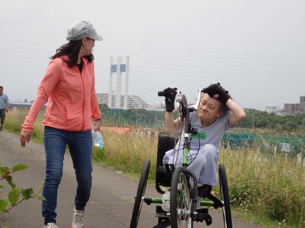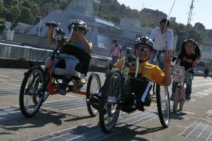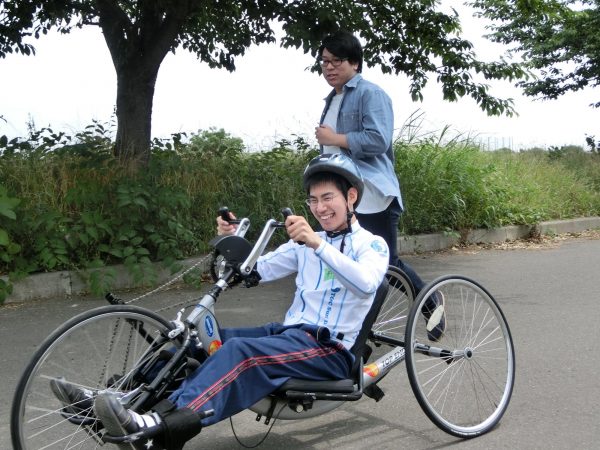 手で漕ぐ自転車や三輪自転車なら、障害があっても漕げるし、全力を出して遠くまで行ってみることが出来ます。