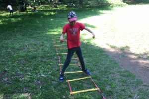 マーカーコーンを使って、コーンの近くを通る練習をしました。