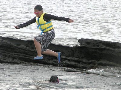 ゴーグルをつけることが苦手だったのに、海でゴーグルをつけて泳いでいる魚を見ることができたともくん